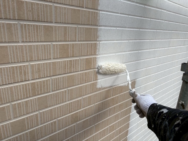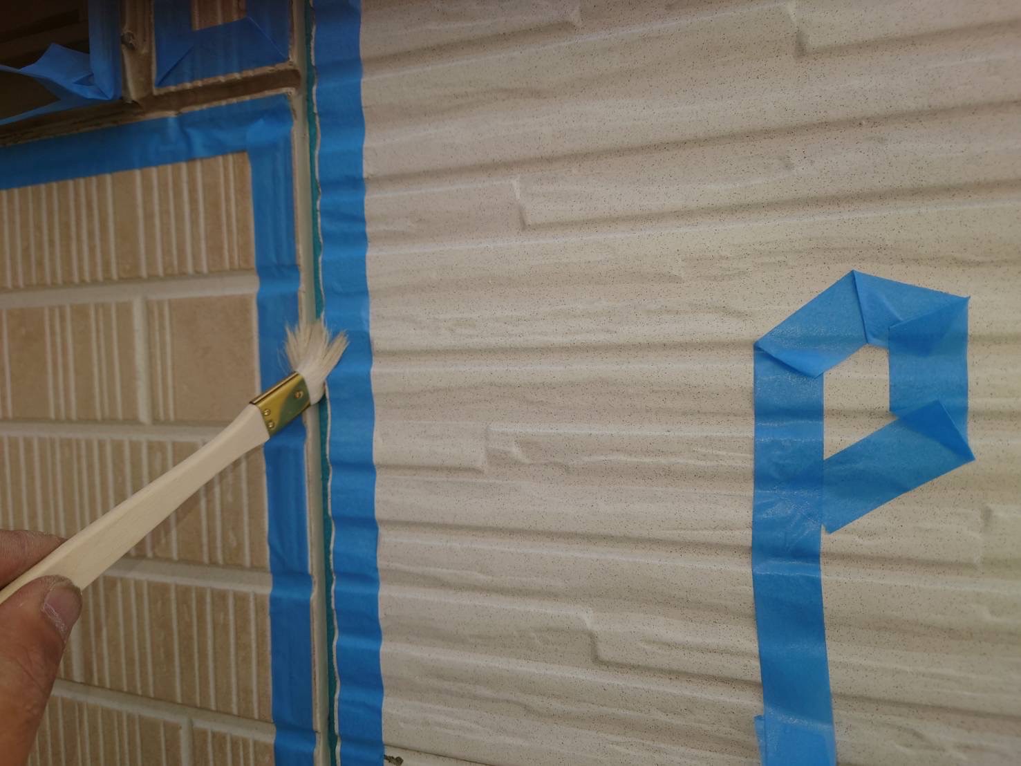 外壁の下塗りを厚みをつけてしっかり施工します。(下写真)