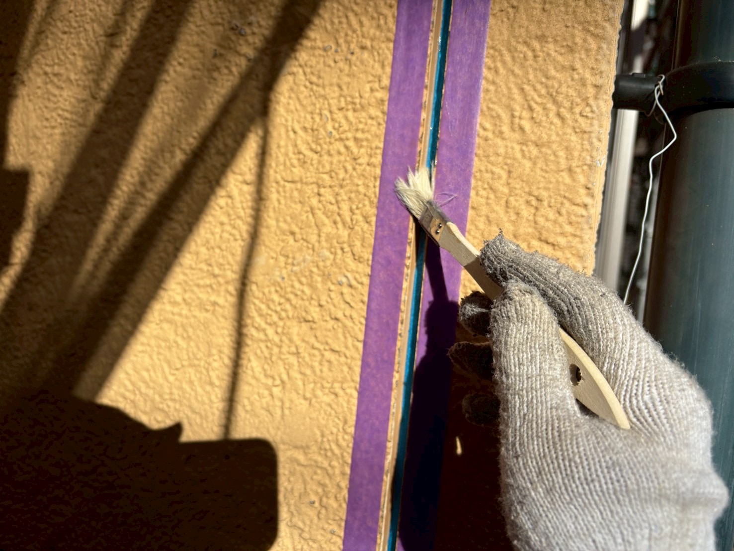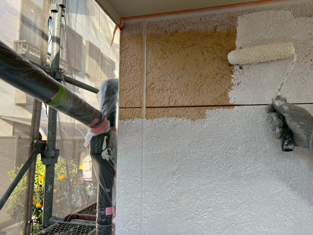 外壁の下塗りを厚みをつけてしっかり施工します。(下写真)