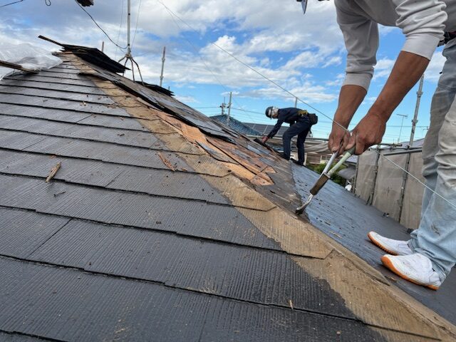 スレート屋根をはがします。