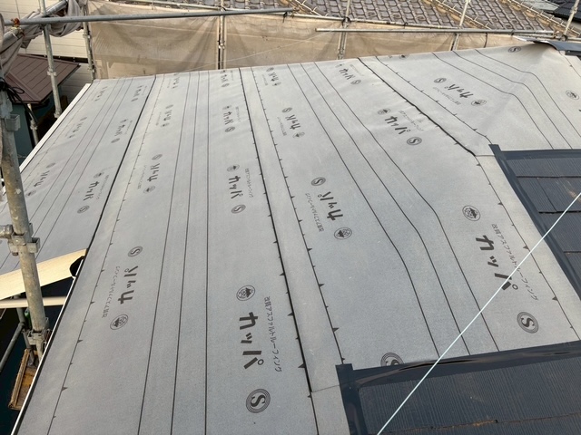 新しく野地板を施工してからルーフィング張りをします