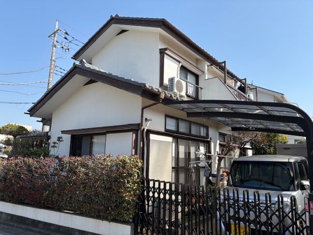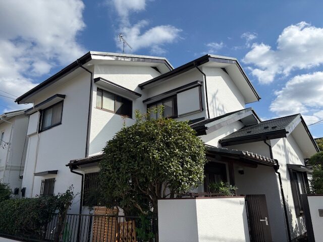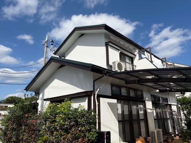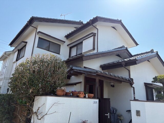 築42年モルタル壁をホワイト付帯部にはブラウンを使って外壁塗装!
