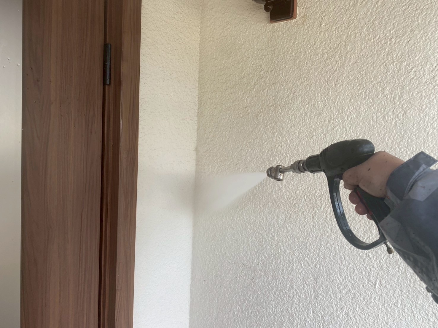 まず、塗装の前に高圧洗浄で、コケや汚れ、黒ずみ、旧塗膜等をしっかり落としていきます!高圧洗浄でしっかりと旧塗膜や汚れを落としておくことで、塗料の密着性を良くする効果を発揮できるからです。