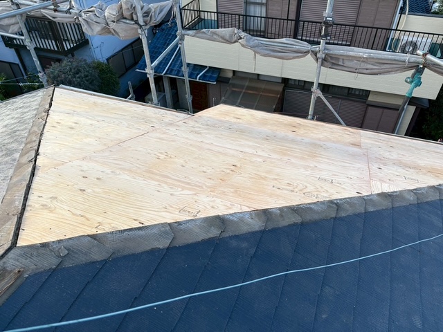 今日は水が入り野地板が腐ってしまった屋根を張り替える工事の様子です。
